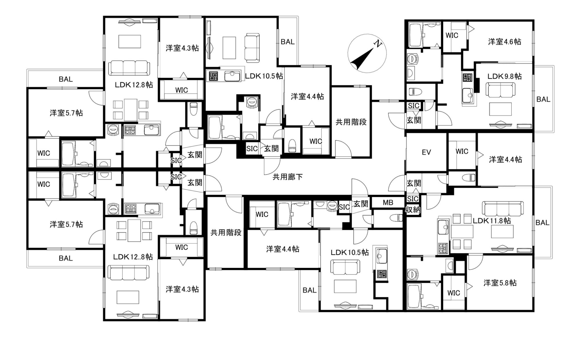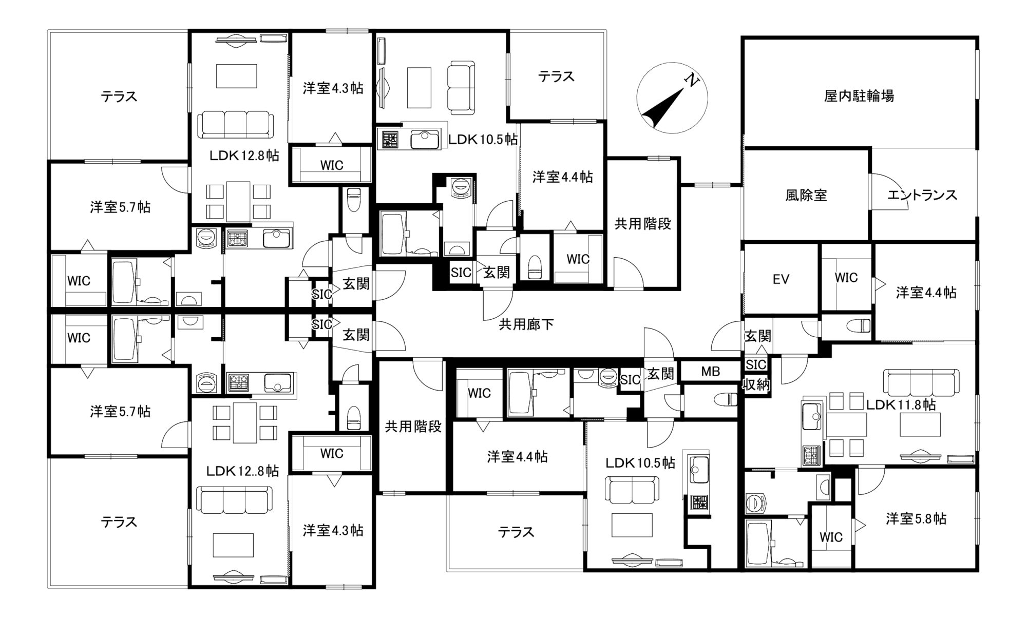エレベータ・3LDKは都市ガスエコジョーズ給湯・暖房(洋室2部屋も暖房器有り)1LDK/2LDKは都市ガス給湯・都市ガスFF暖房・ネット無料(Wi-Fi)※ダイバーシティネットワーク・4K放送対応チューナー・システムキッチン(2LDK・3LDKは3口 1LDKは2口)・エアコン(冷暖房※非寒冷地仕様)・シャンドレ・ウォシュレット・追炊機能付きバス(3LDKは1416サイズ 1LDK・2LDKは1216サイズ)・浴室乾燥機・BS・遮音フローリング (L45規格)・TVモニターホン・防犯カメラ・宅配BOX・オートロック・ロードヒーティング・屋内駐輪場(登録制・駐輪台数制限有)・顔認証オートロック解除システム※・玄関にはデジタル暗証キーでキーレス生活可能です。
