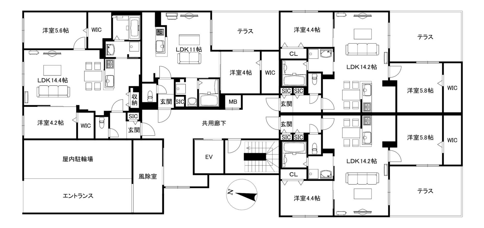 エレベータ・2LDK・1LDKは都市ガス給湯・都市ガスFF暖房・ネット無料(Wi-Fi)※ダイバーシティネットワーク・4K放送対応チューナー・システムキッチン(3口)・エアコン(冷暖房※非寒冷地仕様)・シャンドレ・ウォシュレット・追炊機能付きバス(2LDKは1416サイズ 1LDKは1216サイズ)・浴室乾燥機・BS・遮音フローリング (L45規格)・TVモニターホン・防犯カメラ・宅配BOX・オートロック・ロードヒーティング・屋内駐輪場(登録制・駐輪台数制限有)・顔認証オートロック解除システム※・玄関にはデジタル暗証キーでキーレス生活可能です